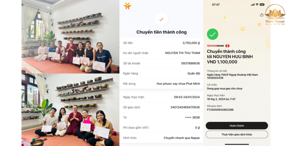 Sau 3 khoá gieo duyên, mình nhận được 4.8 triệu phí đóng góp của các anh chị, chúng mình đã hùn phước để xây chùa Phật Minh và đóng góp cho quỹ từ thiện Xe Bus Yêu Thương, xin chân thành biết ơn sự tham gia và đóng góp của mọi người.