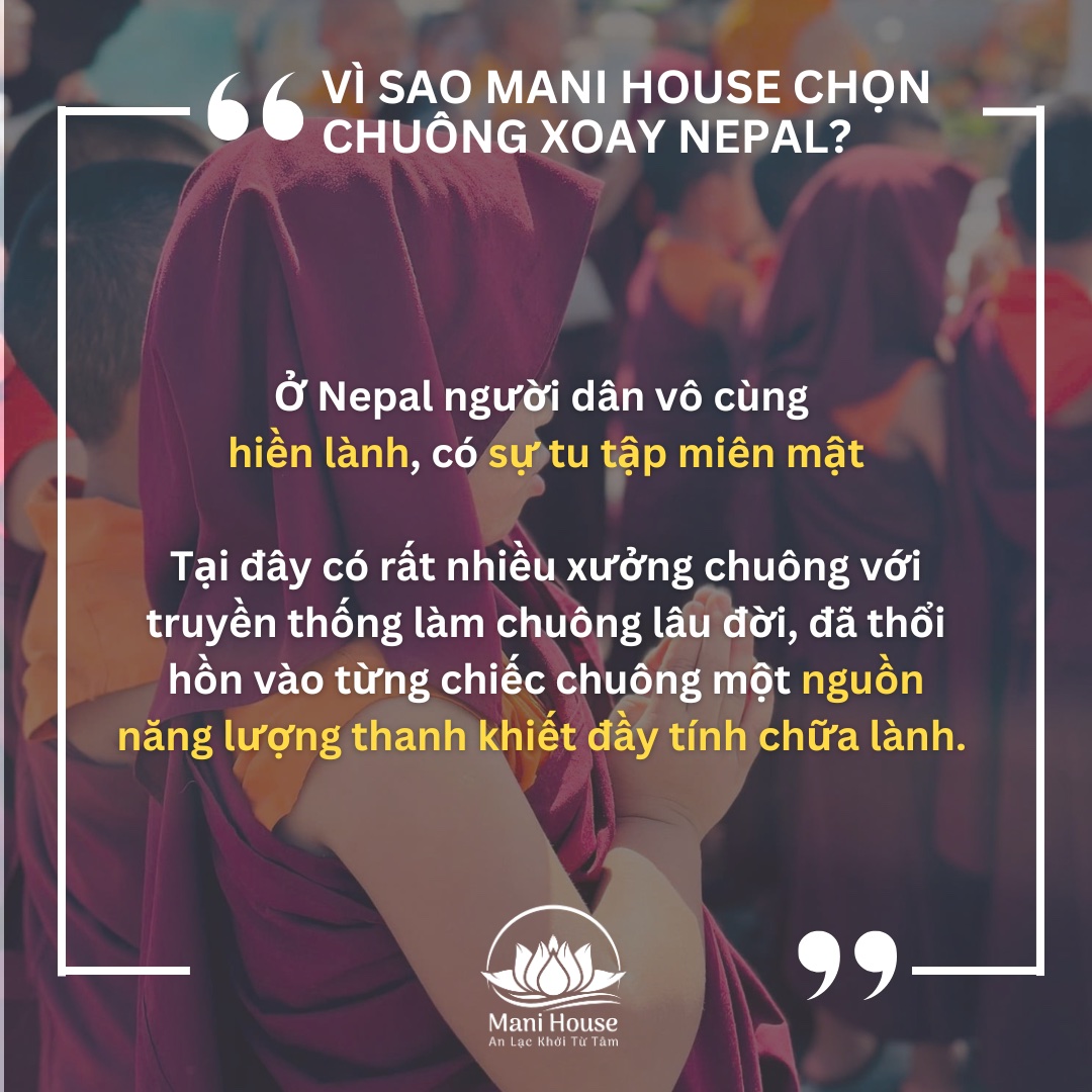 🌿 Ở Nepal người dân vô cùng hiền lành, có sự tu tập miên mật và tại đây có rất nhiều xưởng chuông với truyền thống làm chuông lâu đời, đã thổi hồn vào từng chiếc chuông một nguồn năng lượng thanh khiết đầy tính chữa lành.