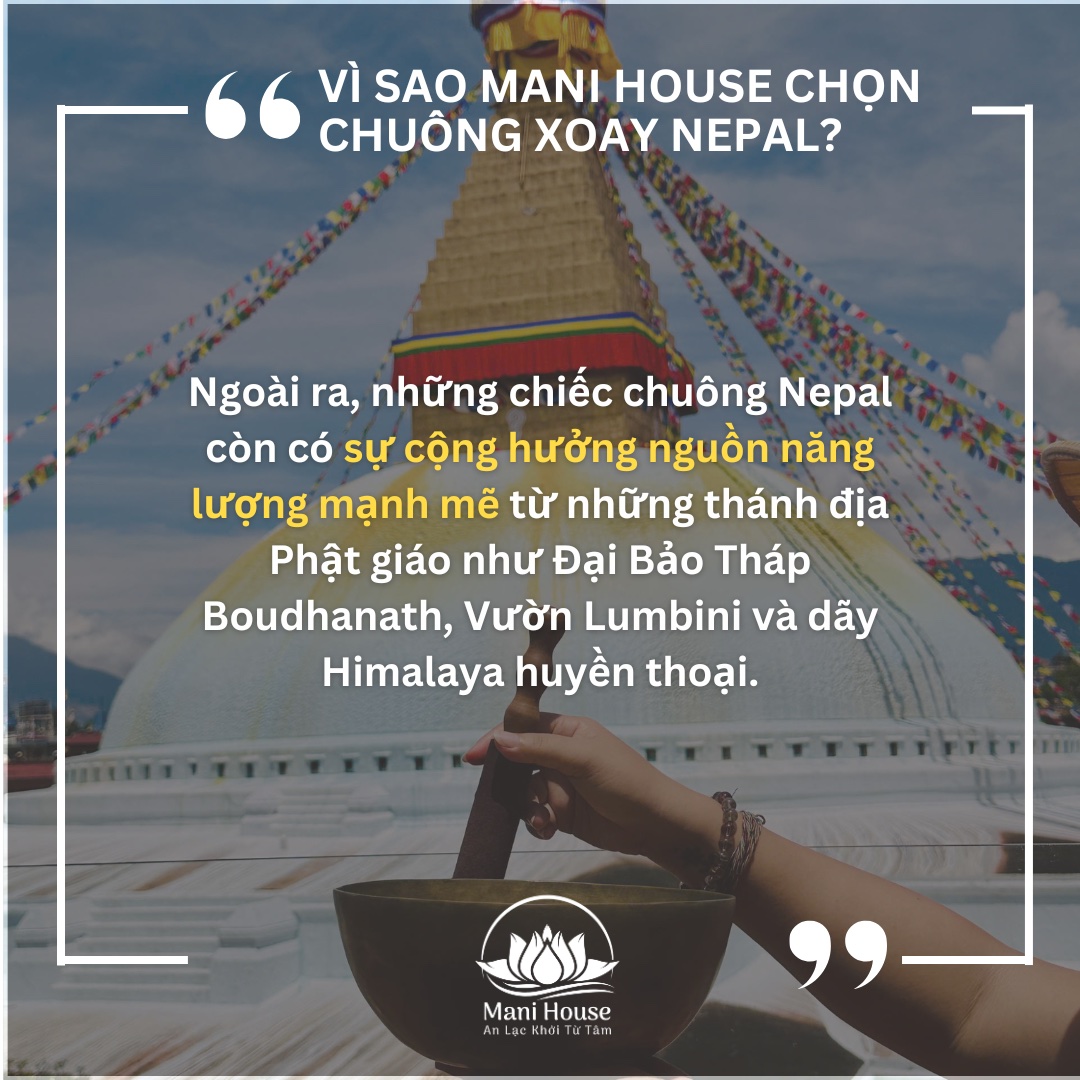 🌿 Ngoài ra, những chiếc chuông Nepal còn có sự cộng hưởng nguồn năng lượng mạnh mẽ từ những thánh địa Phật giáo như Đại Bảo Tháp Boudhanath, Vườn Lumbini và dãy Himalaya huyền thoại.